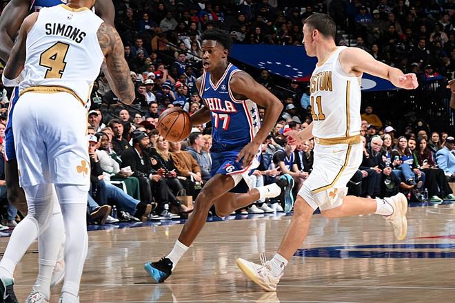 本场比赛中,76人的先发后场新星VJ-埃奇科姆(VJ Edgecombe)的表现其实是比较一般的。埃奇科姆全场出场34分39秒,投篮11中2,三分线外6中2,得到了6分3篮板3助攻2盖帽的数据,还有1次犯规,正负值为+10。埃奇科姆在进攻端得到了大量的出手机会,然而他的进攻效率很不理想,他完全没有找到自己的手感,他也没有得到应该得到的分数,反而显得有些着急。埃奇科姆在防守端起到了很好的效果,他在关键时刻还命中了运气三分,但是他本应该在进攻端起到更大的作用的。如果他能够找到自己的手感,76人在比赛中也会显得更加轻松和顺利一些,其他球员的压力也不会那么大。