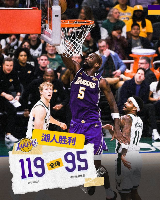 北京时间11月16日,NBA常规赛湖人客场对阵雄鹿,双方均是背靠背第二场。湖人上半场攻防碾压取得65-34领先31分巨大优势,字母哥率领雄鹿下半场顽强反扑追分,雄鹿末节开局一度追到差13分,里夫斯连中三分与东契奇接连罚球,湖人重新扩大20+优势奠定胜局,最终湖人119-95战胜雄鹿收获2连胜,湖人新赛季10胜4负。
